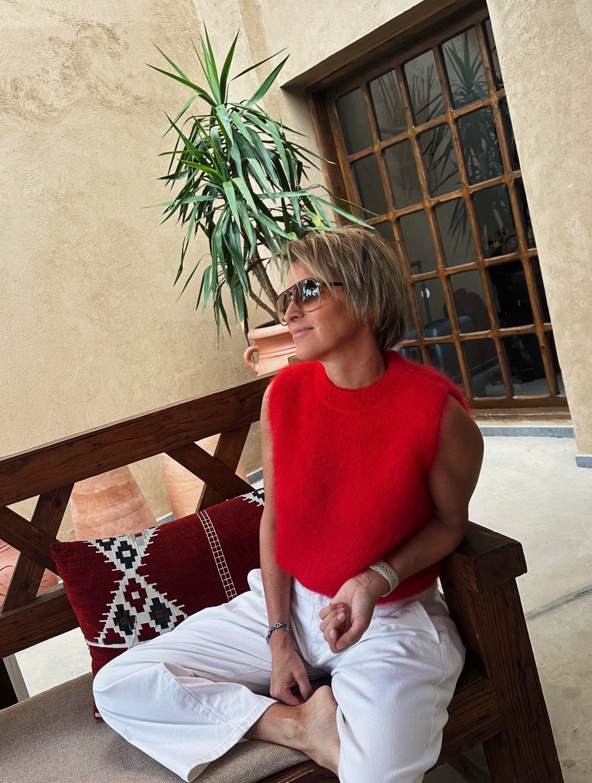 Dit rode pulletje heeft een warme, volle kleur en een zachte uitstraling. Moeiteloos te combineren met een jeans maar ook gekleder te dragen op een rok of onder een blazer.